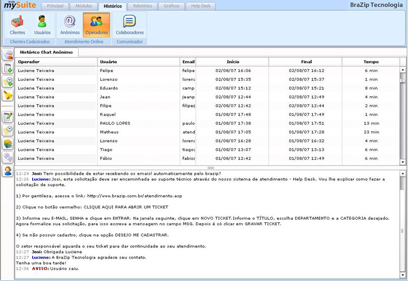 Analise todo o histórico de Atendimento Online para verificações qualitativas.