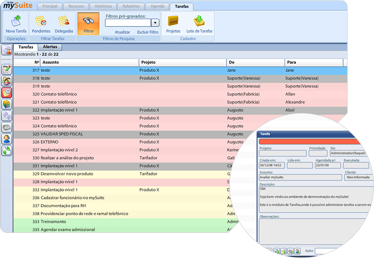 O software BraZip mySuite possui uma ferramenta de Gestão de Projetos e Tarefas, que auxilia gerentes na delegação, acompanhamento, controle e execução de tarefas.